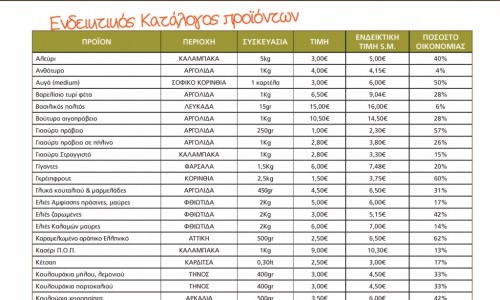 Πρόκειται για ένα κοινωνικό παζάρι, όπου παραγωγοί διαθέτουν ποιοτικά προϊόντα σε προσιτές τιμές στους καταναλωτές. Πιο συγκεκριμένα, αυτό το Σάββατο, πρόκειται να διατεθούν τα εξής προϊόντα: αλεύρι, αυγά, βασιλικός πολτός, βούτυρο αιγοπρόβειο γιαούρτι, γκρέιπφρουτ, γλυκά κουταλιού, ελιές, καραμελωμένο αράπικο, κέτσαπ, κουλουράκια, λάδι, λαζάνια, λεμόνια, λουκάνικα, μανταρίνια, μέλι θυμάρι, ξύδι, οίνοw, ολικής κρίθινο ντακάκι, όσπρια, παξιμάδια, παραδοσιακές πίτες, πατάτες, πελτές τομάτας, πλιγούρι, πορτοκάλια, ρίγανη, ρύζι, σκόρδα, σταφίδα, ταχίνι, τσίπουρο, τυριά, φιστίκια, χαλβάς, ψητή μελιτζάνα με λιαστή τομάτα κ.α