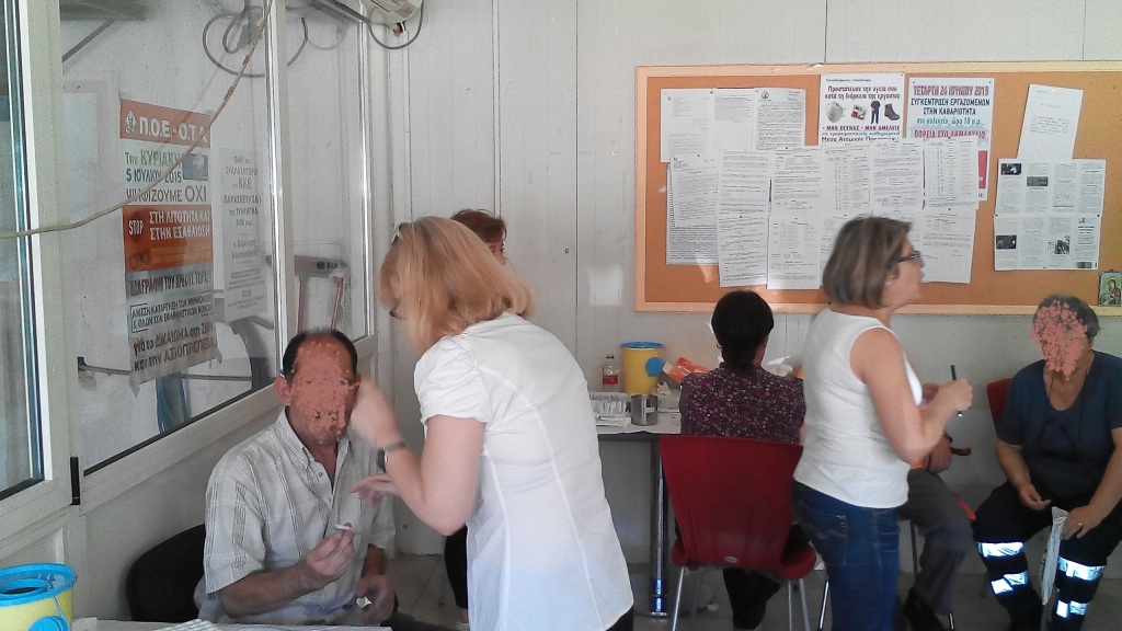 Πιο συγκεκριμένα, έγινε αιμοληψία των εργαζομένων στη καθαριότητα, στο χώρο της εργασίας τους. Στην αιμοληψία συμμετείχε σχεδόν το σύνολο των εργαζομένων. Ο εργαστηριακός έλεγχος συνίσταται στον προσδιορισμό της αντισωματικής επάρκειας των εργαζομένων όσον αφορά την Ηπατίτιδα Β. Τα αίματα θα ελεγχθούν και τα αποτελέσματα θα αναλυθούν και ανάλογα θα προταθεί εμβολιασμός ή περαιτέρω έλεγχος.