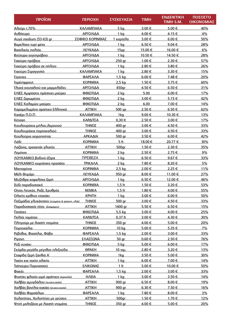 Πρόκειται για ένα κοινωνικό παζάρι, όπου παραγωγοί διαθέτουν ποιοτικά προϊόντα σε προσιτές τιμές στους καταναλωτές. Πιο συγκεκριμένα, αυτό το Σάββατο, πρόκειται να διατεθούν τα εξής προϊόντα: αλεύρι, αλλαντικά, αρτοποιήμητα, αραχίδα, αυγά, βασιλικός πολτός, βότανα, βιολογικά, βούτυρο, γιαούρτι, γκρέιπφρουτ, γλυκά κουταλιού, ελιές, ζυμαρικά, κέτσαπ, κουλουράκια, λάδι, λαζάνια, λεμόνια, λουκάνικα, μανιτάρια, μανταρίνια, μαρμελάδες, μέλι, ξερά σύκα, ξηροί καρποί, ξύδι, οίνος, όσπρια, παξιμάδια, παραδοσιακά εδέσματα, πατάτες, πελτές τομάτας, πίτες, πλιγούρι, πορτοκάλια, ρίγανη, ρύζι, σάλτσες, σκόρδα, σταφίδες, ταχίνι, τσίπουρο, τυροκομικά, φιστίκια, χαλβάς, ψητή μελιτζάνα με λιαστή τομάτα κ.α