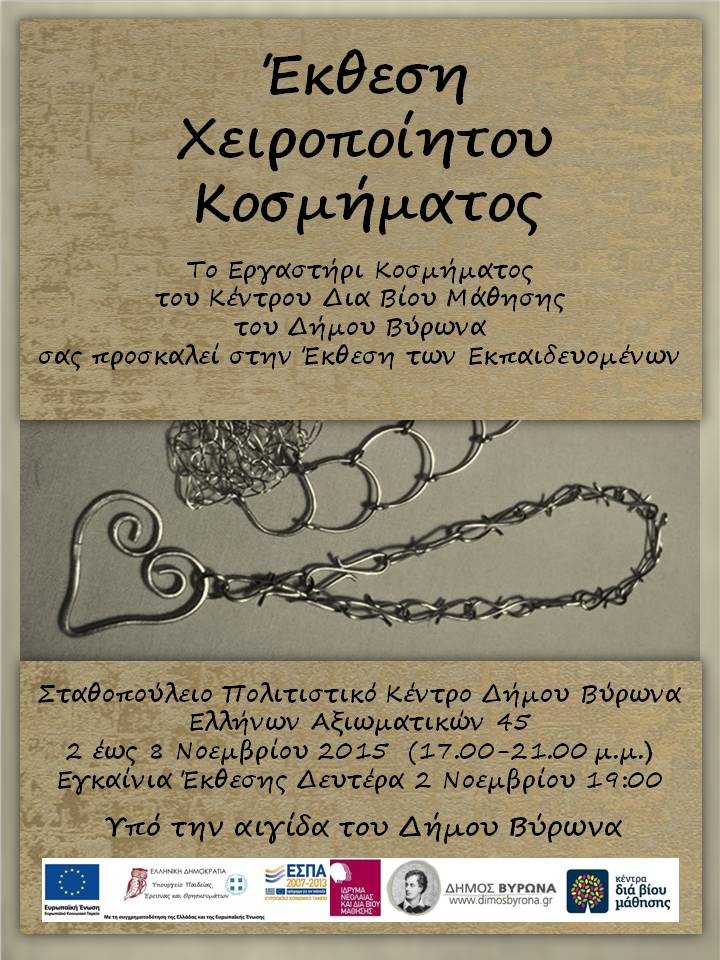 Το Εργαστήρι Κοσμήματος του Κέντρου Δια Βίου Μάθησης του Δήμου Βύρωνα, σας προσκαλεί στην Έκθεση των Εκπαιδευομένων.
