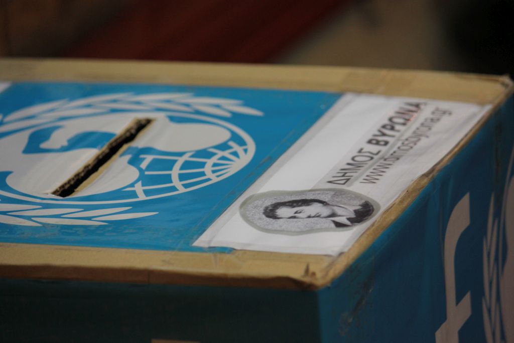 Αφιερώσαμε τις πολιτιστικές εκδηλώσεις του Οκτωβρίου στους πρόσφυγες και σήμερα, οργανώσαμε σε συνεργασία με τους Συλλόγους Γονέων και Κηδεμόνων των Δημοτικών Σχολείων 5ου και 11ου του Δήμου μας, θεατρική εκδήλωση με στόχο τη συλλογή χρημάτων με αφορμή τον τηλεμαραθώνιο της UNICEF που ήταν αφιερωμένος στα προσφυγόπουλα. Επίσης, η Δημοτική Επιχείρηση του Δήμου Βύρωνα προσέφερε το ποσό των 500 €.