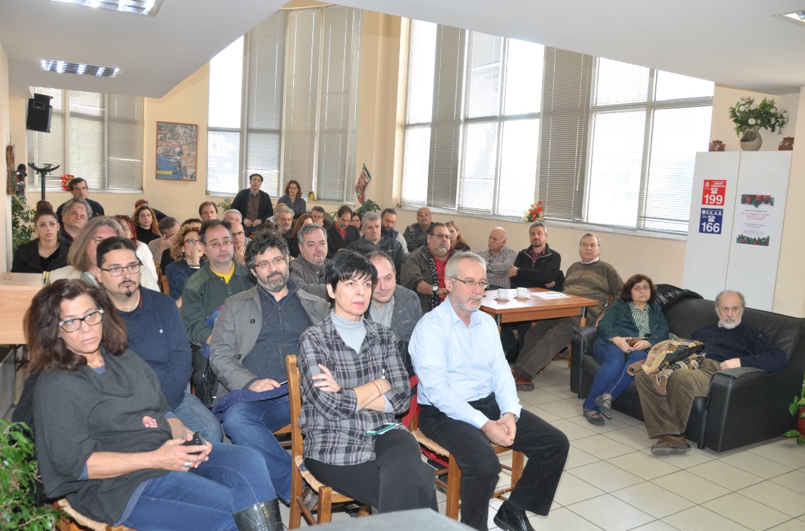 Ακολούθησε συζήτηση σε ζεστή ατμόσφαιρα με τους πολίτες οι οποίοι είχαν γεμίσει την αίθουσα. Ζητήματα όμως το κοινωνικό περιεχόμενο του Χριστιανισμού, η σχέση πίστης και Αριστεράς, η ανάγκη οραμάτων και αλληλέγγυας πράξης έλκυσαν το ενδιαφέρον πολλών.