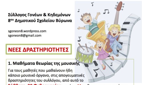 Δύο (2) νέες δραστηριότητες από αυτό το Σάββατο 20/2 στο 8ο Δημοτικό Σχολείο Βύρωνα.