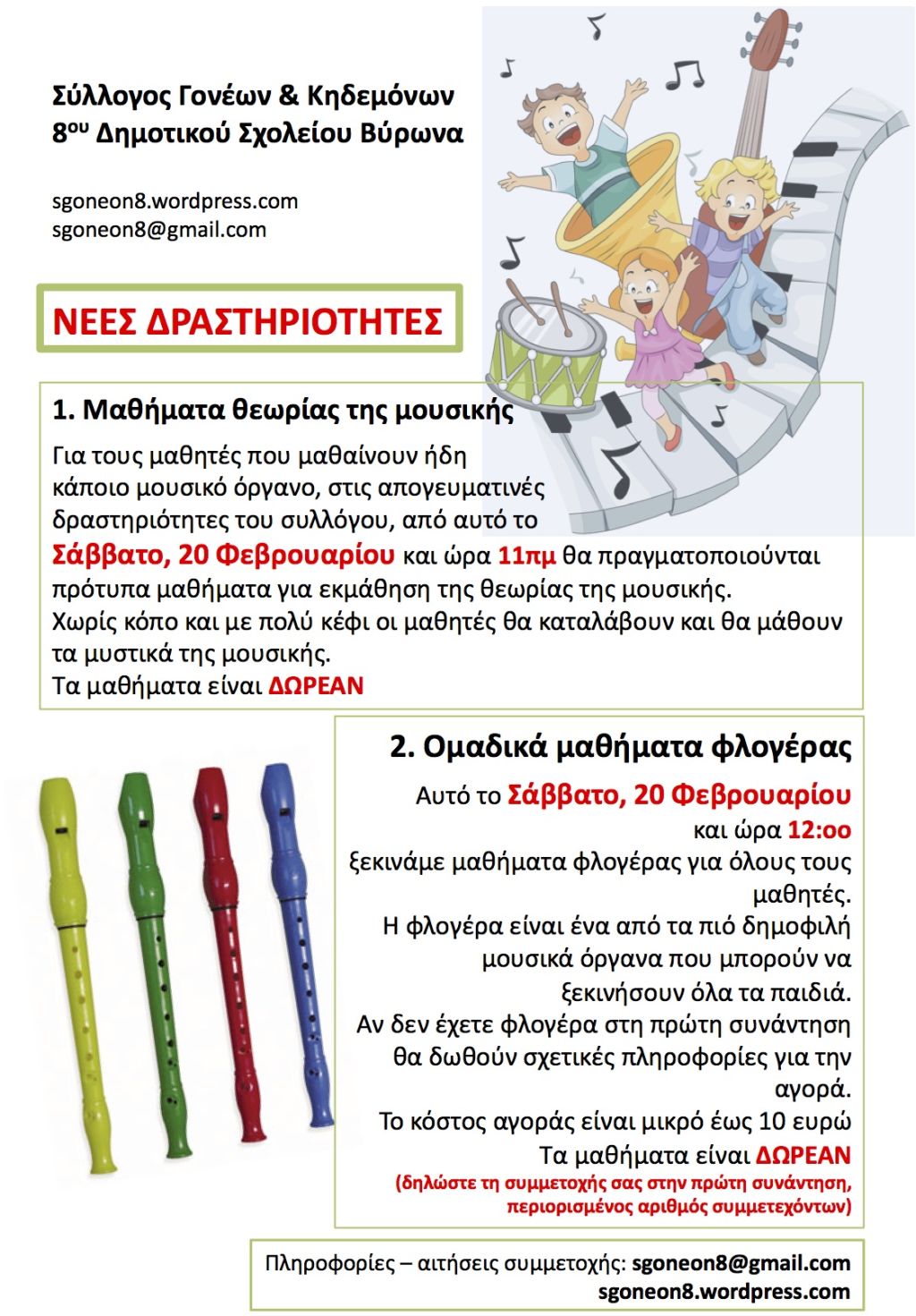 Μαθήματα θεωρητικής μουσικής και φλογέρας στο 8ο Δημοτικό Σχολείο Βύρωνα