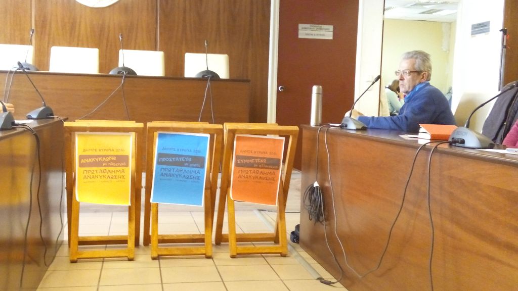 Στη συνάντηση παρευρέθηκαν επίσης ο Αντιδήμαρχος Περιβάλλοντος, Διαχείρισης Κοινοχρήστων Χώρων, Καθαριότητας και Ανακύκλωσης, Γιάννης Μαυρίκης, ο οποίος ως υπεύθυνος για τη δράση, αναφέρθηκε στην ιδέα διοργάνωσης τους πρωταθλήματος, ενώ απάντησε και στα ερωτήματα που έθεσαν οι επικεφαλής των σχολείων.