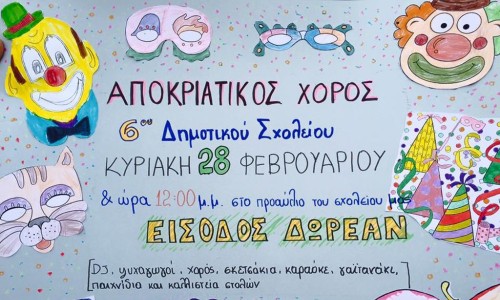 Αποκριάτικος χορός στο 6ο Δημοτικό Σχολείο Βύρωνα, 28 Φεβρουαρίου, στις 12:00 μμ, προαύλειος χώρος σχολείου