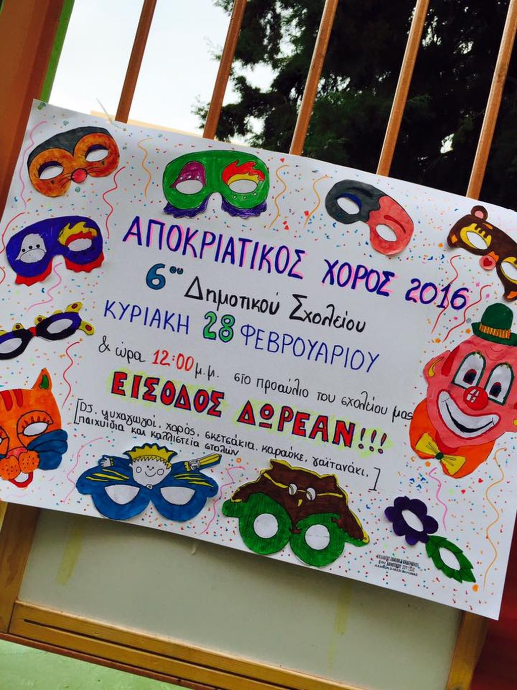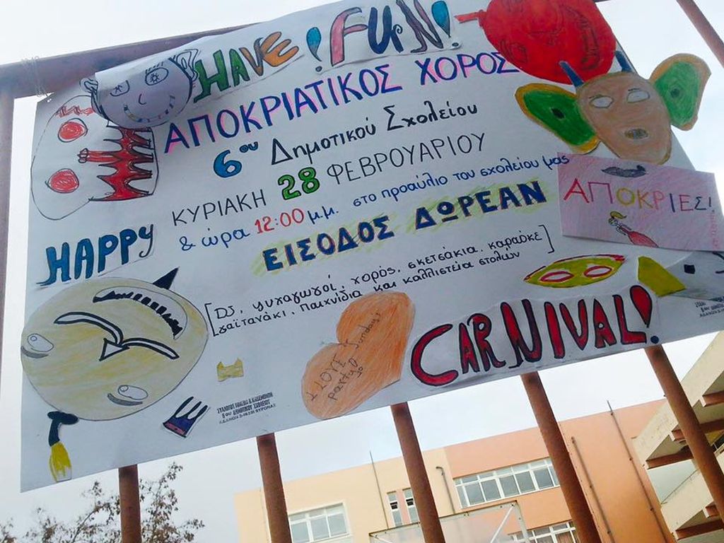 Η οργάνωση του αποκριάτικου πάρτυ έγινε από τους γονείς, ενώ οι μαθητές ζωγράφισαν τις αφίσες του πάρτυ.