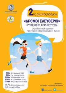 2ος αγώνας δρόμου "ΔΡΟΜΟΙ ΕΛΕΥΘΕΡΟΙ" την Κυριακή 3 Απριλίου 2016