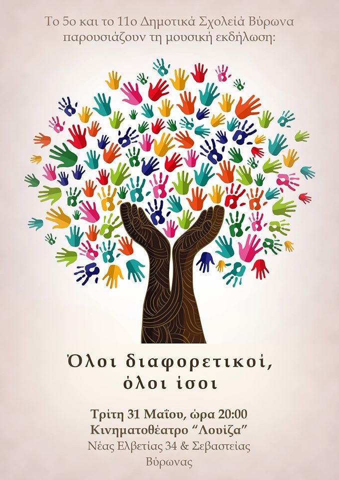 Το 5ο και 11ο Δημοτικά Σχολεία Βύρωνα παρουσιάζουν την εκδήλωση: Όλοι διαφορετικοί, όλοι ίσοι