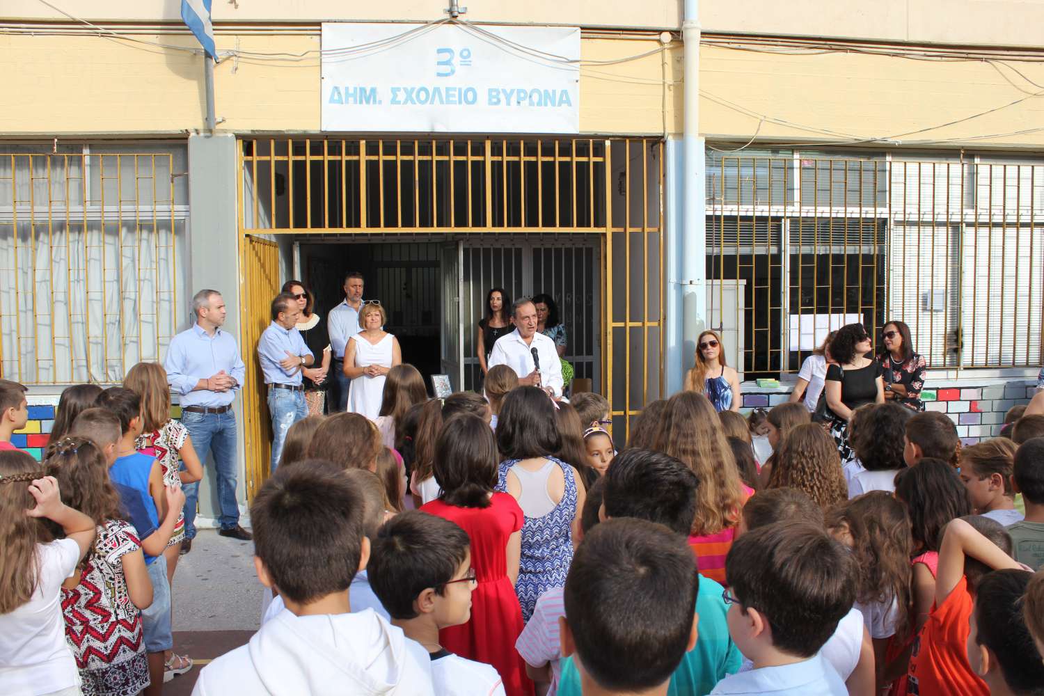 Ο Δήμαρχος Βύρωνα Γρηγόρης Κατωπόδης επισκέφθηκε το 3ο και το 1ο Δημοτικά Σχολεία (Αγ. Τριάδας), καθώς και το 1ο ΓΕΛ Μυρακτής (Ανάληψη), όπου τελέστηκε ο καθιερωμένος αγιασμός και ευχήθηκε τα εξής: