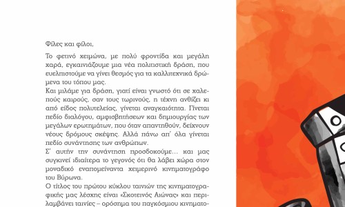 Είναι μια νέα πολιτιστική δράση, που στοχεύει κάθε κύκλος της να αποτελεί ένα θεματικό αφιέρωμα σε ζητήματα που απασχολούν τη σύγχρονη κοινωνία μας και ταυτόχρονα να μεγαλώσει την παρέα αυτών που αγαπούν τον καλό κινηματογράφο και την ατμόσφαιρα της κινηματογραφικής αίθουσας.