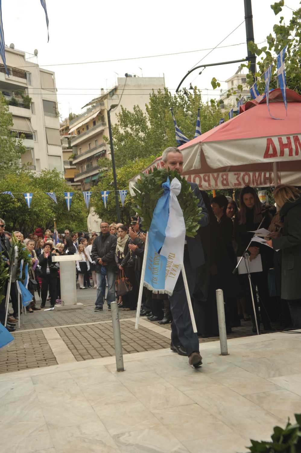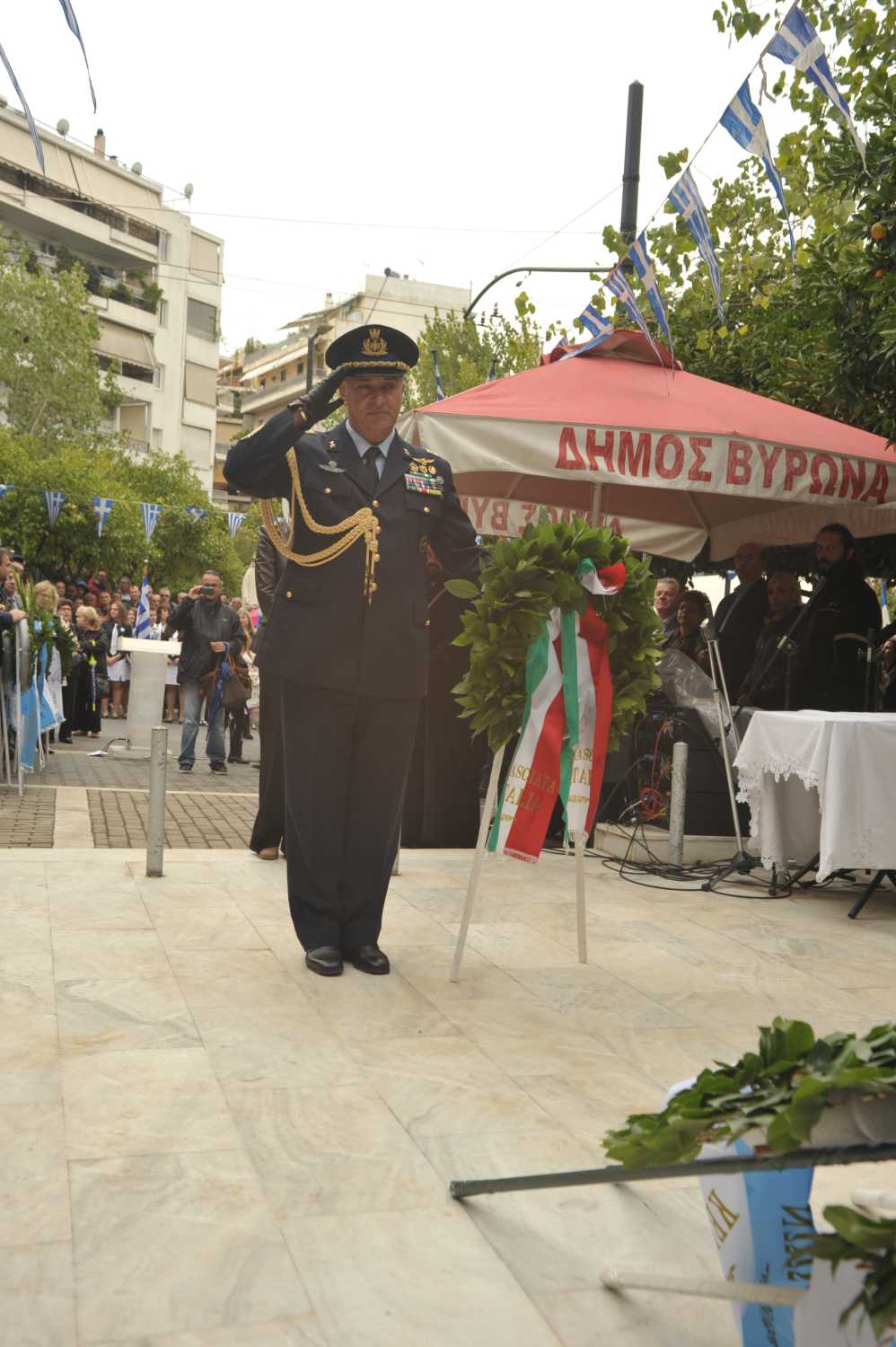Με μια λαμπρή εκδήλωση εορτάστηκε η Εθνική Επέτειος της 28ης Οκτωβρίου στον Βύρωνα. Το τελετουργικό της ημέρας συμπεριλάμβανε Κωδωνοκρουσίες στους Ιερούς Ναούς, Δοξολογία στον Ιερό Ναό της Α. Τριάδος, την κατάθεση στεφάνων στο Μνημείο Εθνικής Αντίστασης (Πλατεία Χρυσοστόμου Σμύρνης) και τη μαθητική παρέλαση.