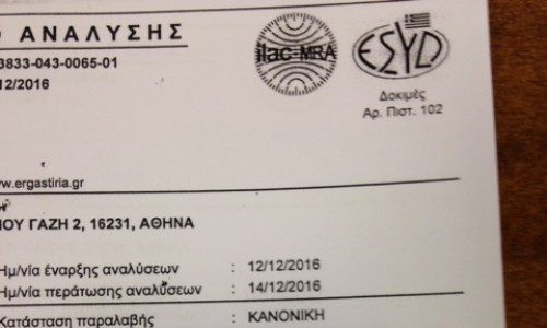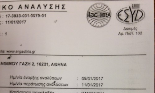 Εδώ μπορείται να δείτε τα πιστοποιητικά ανάλυσης: