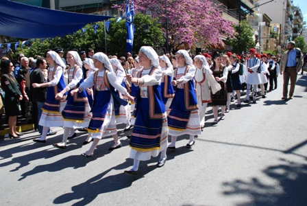 Οι εορταστικές εκδηλώσεις ολοκληρώθηκαν με την παρέλαση των μαθητών από τα 6 Γυμνάσια, τα 6 Λύκεια και τα 14 Δημοτικά σχολεία της πόλης, των προσκόπων, των εθελοντών δασοπυροσβεστών και των αντιστασιακών.