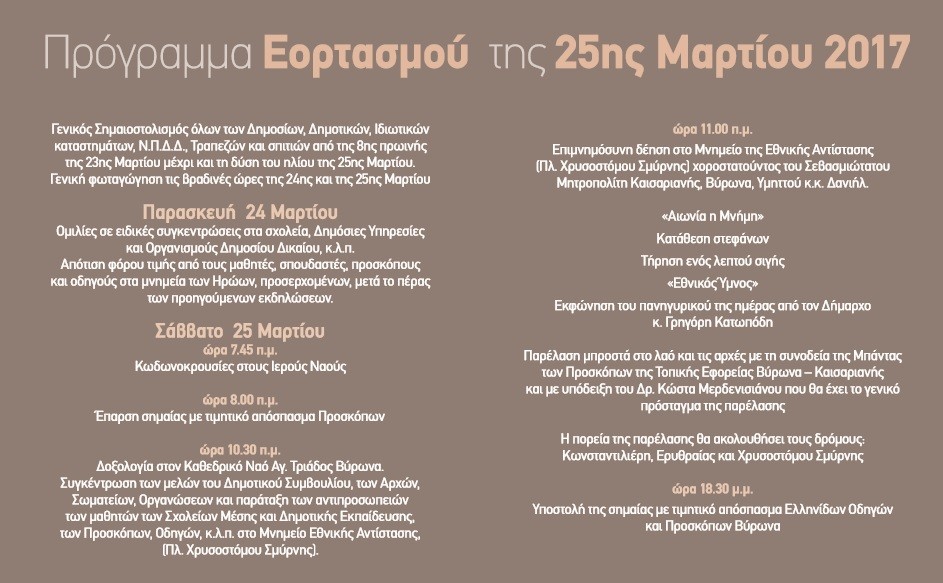 Πρόγραμμα εορτασμού 25ης Μαρτίου 2017