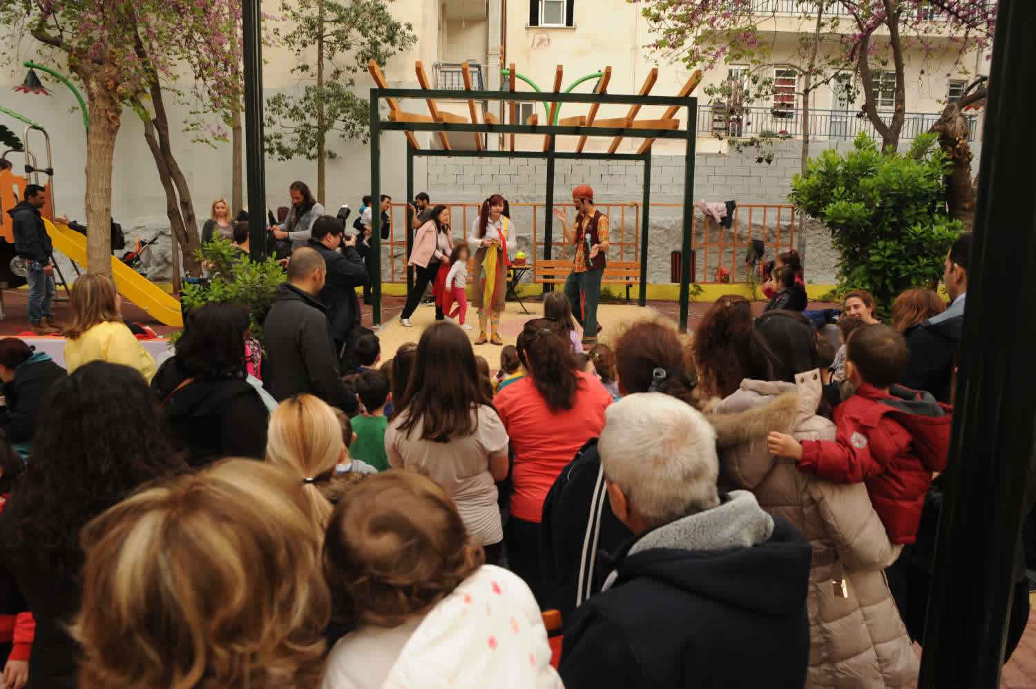 Στη γιορτή συμμετείχε όλη η γειτονιά. Από τις 6 το απόγευμα η Παιδική Χαρά πλημμύρισε από παιδιά τα οποία ανέλαβαν να διασκεδάσουν, ταχυδακτυλουργός, ζογκλέρ και dj, ενώ μοιράστηκαν χυμοί στα παιδιά.