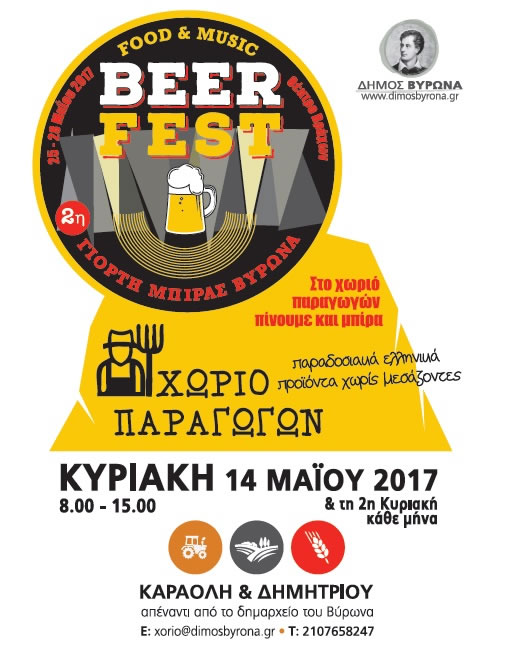 Την Κυριακή 14 Μαίου 2017, στο πάρκο της Καραολή & Δημητρίου απέναντι από το Δημαρχείο, θα διεξαχθεί η κοινωνική δράση “Χωριό Παραγωγών”, που διοργανώνεται από τον Δήμο Βύρωνα με ώρες λειτουργίας 08:00 – 15:00.