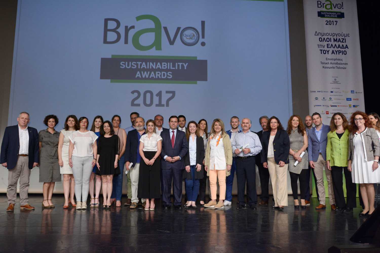 Με μια τελετή στο Μέγαρο Μουσικής ολοκληρώθηκαν την Πέμπτη 25 Μαΐου τα BRAVO SUSTAINABILITY AWARDS 2017, που διοργάνωσε για 7η συνεχή χρονιά το QualityNet Foundation, αναδεικνύοντας τις πρωτοβουλίες που συμβάλλουν στη Δημιουργία της Ελλάδας του Αύριο.
