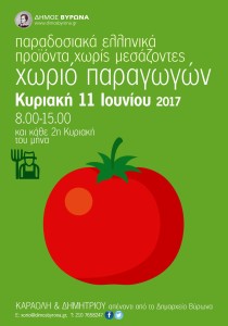 Την Κυριακή 11 Ιουνίου 2017, στο πάρκο της Καραολή & Δημητρίου απέναντι από το Δημαρχείο, θα διεξαχθεί η κοινωνική δράση “Χωριό Παραγωγών”, που διοργανώνεται από τον Δήμο Βύρωνα με ώρες λειτουργίας 08:00 – 15:00.