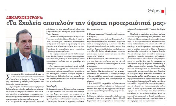 «Πρώτα η Παιδεία» - ¶ρθρο του Δημάρχου Βύρωνα στην «ΖΩ2»