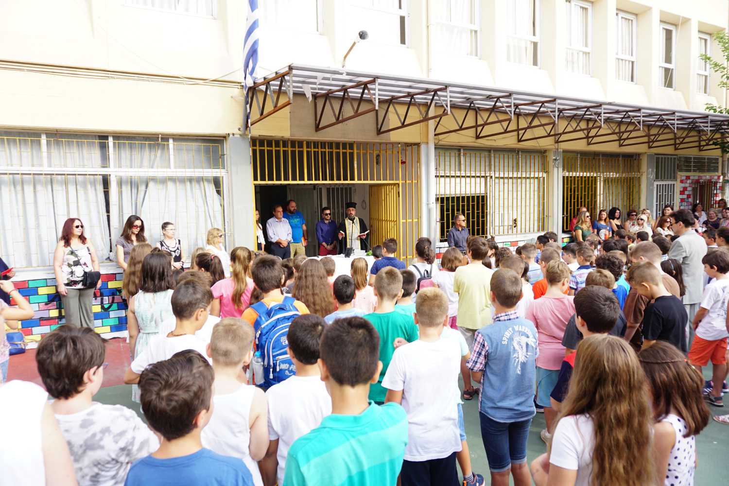 Ο καθιερωμένος αγιασμός που σηματοδοτεί την έναρξη της σχολική χρονιάς, πραγματοποιήθηκε σήμερα Δευτέρα 11 Σεπτεμβρίου 2017, σ’ όλα τα σχολεία του Βύρωνα.