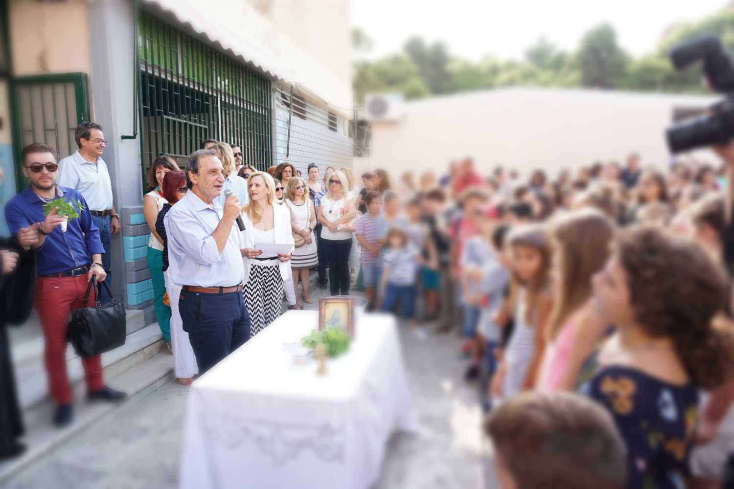 Ο Δήμαρχος Βύρωνα στον χαιρετισμό του ανέφερε ότι «για εμάς, σαν Δημοτική Αρχή τα θέματα παιδείας είναι βασική μας προτεραιότητα. Προετοιμάσαμε την έναρξη με συντήρηση των σχολείων, δηλαδή βαψίματα, διευθέτηση τουαλετών, διευθέτηση αυλών κλπ, ενώ για το σημαντικό θέμα της φύλαξης βάλαμε συναγερμούς σ’ όλα τα σχολεία και έχουμε έτοιμη την εργολαβία για τη σύνδεσή τους με το φυσικό αέριο».
