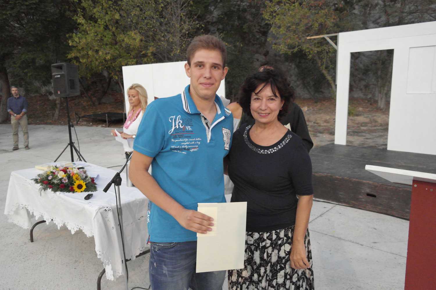Στην τελετή βράβευσης από τη Δημοτική Αρχή παρευρέθηκαν ο Δήμαρχος Βύρωνα Γρηγόρης Κατωπόδης, ο Πρόεδρος του Δημοτικού Συμβουλίου Κώστας Αγγέλης, η Αντιδήμαρχος Πολιτισμού, Παιδείας & Νέας Γενιάς Λεμονιά Κλωνάρη, ο Αντιδήμαρχος Περιβάλλοντος, Διαχείρισης Κοινοχρήστων Χώρων, Καθαριότητας & Ανακύκλωσης Γιάννης Μαυρίκης, ο Αντιδήμαρχος Οικονομικών & Διοικητικών Υπηρεσιών Δημήτρης Κόκκαλης, ο Αντιδήμαρχος της Τεχνικής Υπηρεσίας Μιχάλης Καραγιάννης, ο Αντιδήμαρχος Κοινωνικής Προστασίας & Αλληλεγγύης Χρήστος Σπυρόπουλος, οι επικεφαλής των παρατάξεων Μίλτος Μπαντής και Αλέξης Σωτηρόπουλος και οι Δημοτικοί Σύμβουλοι Ελένη Βασιλοπούλου, Γιώργος Αρβανίτης Σοφία Δασκαλάκη, Νίκος Κορρές, Ιουλία Κιούπη, Λευτέρης Τριανταφύλλου, Πηνελόπη Δάφνη, Κωνσταντίνος Ζούμπος, Τάσος Μαυρόπουλος και Βαγγέλης Γείτονας. Στην τελετή παρευρέθηκαν επίσης οι Διευθύντριες των 3ου Γυμνασίου και 3ου Λυκείου Βύρωνα, Ελένη Δαμαλά και Βενετία Στύλιου αντίστοιχα.