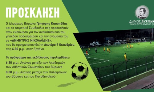 6:30 μ.μ.: Αγώνας των Ακαδημιών των Αθλητικών Σωματείων του Βύρωνα