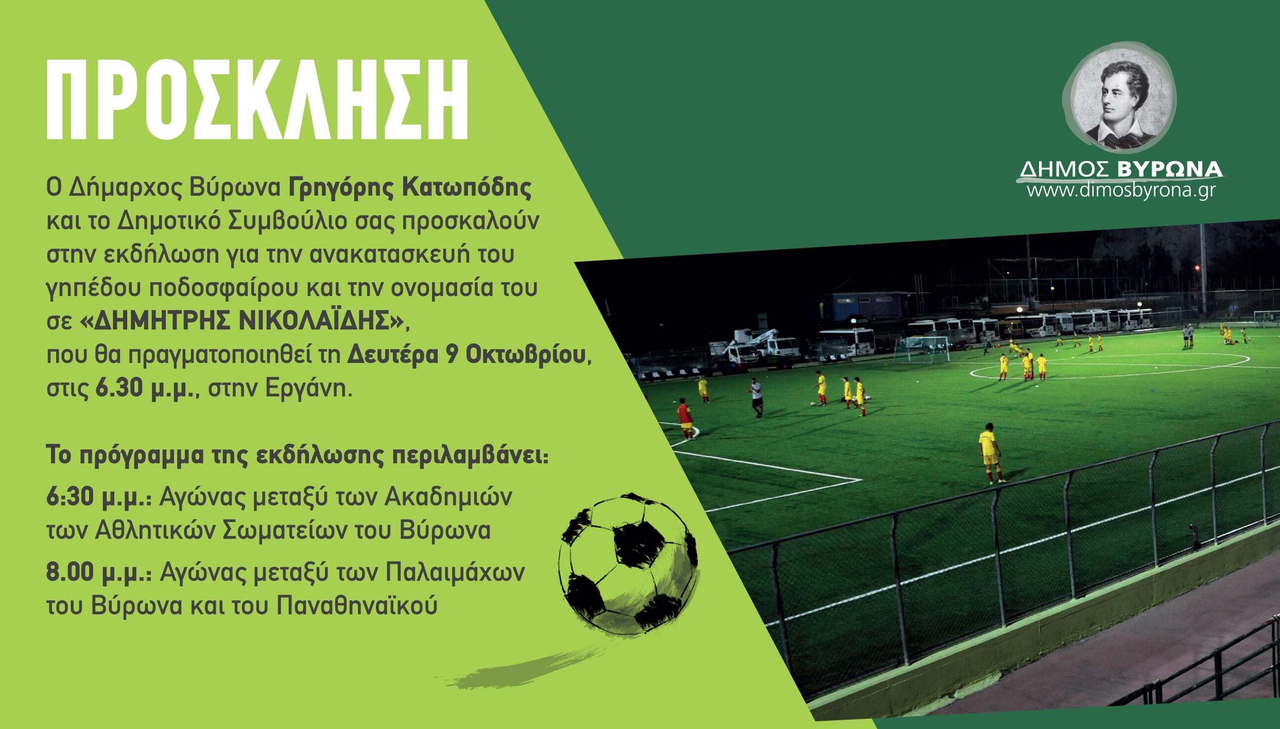 Πρόκειται για το γήπεδο το οποίο έλαβε την ονομασία του πρώην Δημάρχου Βύρωνα, Δημήτρη Νικολαΐδη, μετά από απόφαση του Δημοτικού Συμβουλίου.