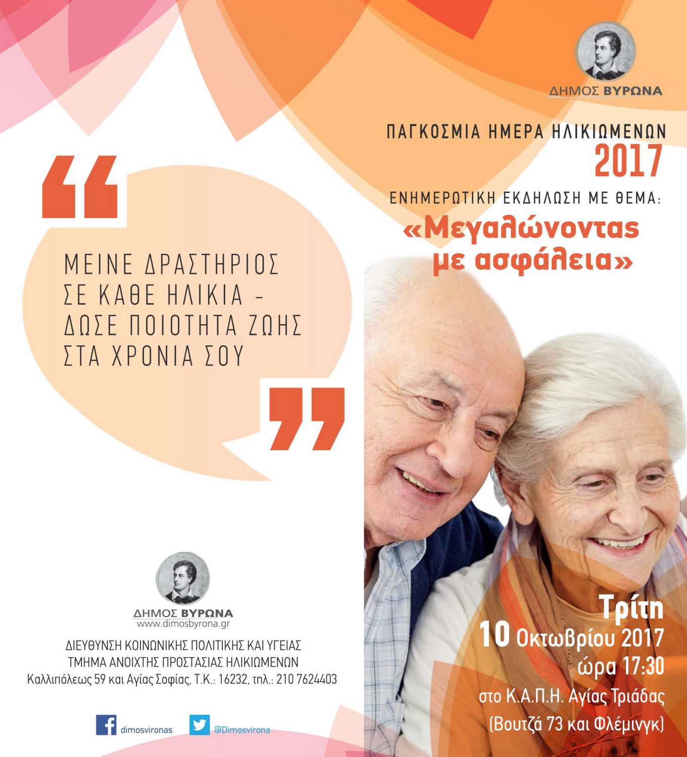 Παγκόσμια Ημέρα Ηλικιωμένων “Μεγαλώνοντας με ασφάλεια”