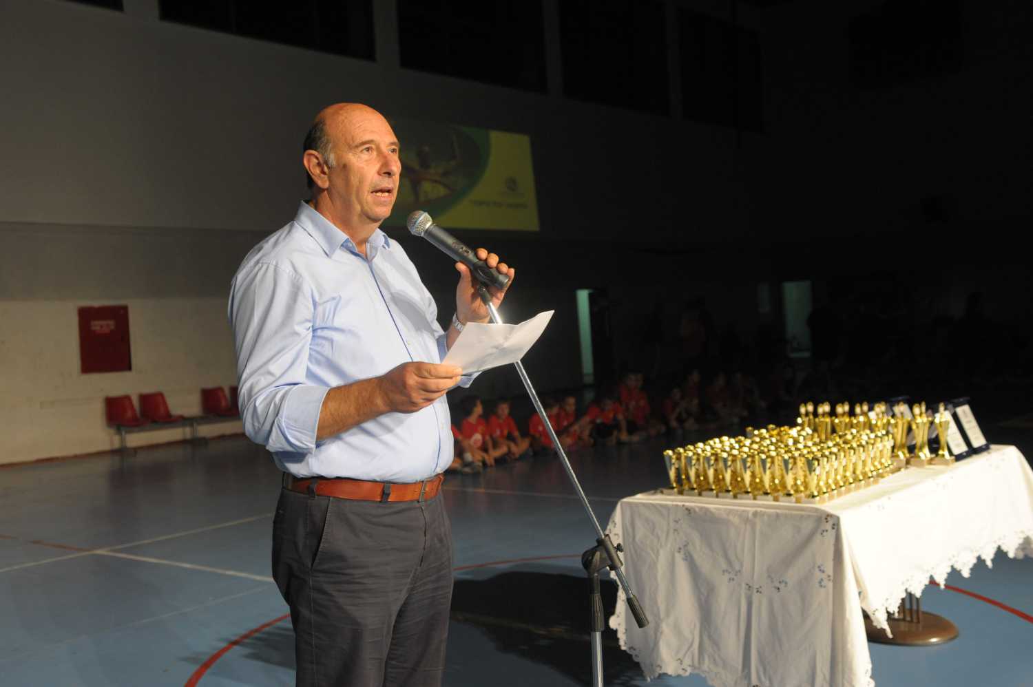 «Σας καλωσορίζουμε στη σημερινή γιορτή του Αθλητή, που διοργανώνουμε για 2η συνεχή χρονιά και σας ευχαριστούμε για την παρουσία σας. Και αυτή τη χρονιά οι στόχοι μας είναι: Η επιβράβευση αθλητών και ομάδων του Δήμου μας για τις επιτυχίες που είχαν την προηγούμενη αθλητική περίοδο. Οι τιμητικές διακρίσεις σε Βυρωνιώτες για την προσφορά τους στον αθλητισμό. Η προβολή των αθλημάτων που καλλιεργούνται στο Δήμο μας μέσω των αθλητικών συλλόγων. Η ενημέρωση για τις αθλητικές δραστηριότητες του Δήμου. Tέλος, βασικότερος στόχος μας, η ανάπτυξη του αθλητισμού, που σημαίνει να φέρουμε το δημότη και κυρίως τα παιδιά στα γήπεδα. Ήδη τη χρονιά που πέρασε είχαμε την επαναλειτουργία δύο νέων τμημάτων. Του τμήματος Χάντμπολ του Αθηναϊκού που έχει προσφέρει μεγάλες επιτυχίες τα προηγούμενα χρόνια και του τμήματος Πυγμαχίας της Δόξας Βύρωνα που έχει αναδείξει πρωταθλητές στο συγεκριμένο άθλημα. Στη σημερινή γιορτή θα βραβεύσουμε τους αθλητές των αθλητικών συλλόγων για τις επιτυχίες τους, αλλά τονίζουμε μέσα από αυτό ότι βραβεύουμε κυρίως την προσπάθεια που κάνουν χιλιάδες παιδιά και μαζί με αυτά τα μέλη των συλλόγων και οι γονείς τους που τα υποστηρίζουν. Είμαστε χαρούμενοι που και φέτος ομάδες ατομικών αθλημάτων είχαν επιτυχίες την περασμένη αγωνιστική χρονιά. Επιτρέψτε μου να αναφέρω για μια ακόμη φορά τα αθλήματα που αναπτύσσονται στο Δήμο μας: Ποδόσφαιρο, Μπάσκετ, Βόλεϊ, Χάντμπολ, Πάλη, Τάε Κβον Ντο, Τζούντο, Σκοποβολή, Ενόργανη Γυμναστική, Πυγμαχία, Πινγκ-Πονγκ, Στίβο και Ποδόσφαιρο Σάλας. Ο Δήμος μας για όλες αυτές τις δραστηριότητες διαθέτει, 2 γήπεδα ποδοσφαίρου, 5 γήπεδα 5χ5, 4 κλειστά γυμναστήρια, 7 ανοικτά, 5 κλειστές αίθουσες. Ιδιαίτερη μνεία θα κάνω για το κολυμβητήριο, το οποίο αθλούνται περισσότεροι από 1.300 πολίτες. Είμαστε σταθερά προσανατολισμένοι στη συντήρηση των αθλητικών εγκαταστάσεων. Ήδη την περασμένη Δευτέρα εγκαινιάσαμε την ανακατασκευή του ποδοσφαιρικού γηπέδου «Δημήτρης Νικολαΐδης». Ένα πανέμορφο γήπεδο που πλέον το χρησιμοποιούν εκατοντάδες μικροί και μεγάλοι. Προχωράμε στην ανακατασκευή των ανοικτών γηπέδων του 2ου αθλητικού κέντρου, δίπλα από το κλειστό, με επιχορήγηση του Υπουργείου Αθλητισμού και θα θέλαμε και από αυτή τη θέση να ευχαριστήσουμε τον Υφυπουργό Πολιτισμού και Αθλητισμού κ. Βασιλειάδη για την βοήθεια που μας δίνει, όπως έκανε άλλωστε και με την κλειστή αίθουσα στο Δημοτικό Στάδιο Βύρωνα. Έχουμε ακόμα να κάνουμε πολλά στον τομέα αυτό. Οι αθλητές πρέπει να έχουν τις κατάλληλες συνθήκες για να μπορούν να αθληθούν. Ο Δήμος μας την περίοδο που πέρασε στο Τομέα του μαζικού αθλητισμού πραγματοποίησε διάφορες δραστηριότητες και συμμετείχε σε πρωτοβουλίες φορέων και συλλόγων. Διοργανώσαμε για μια ακόμη φορά την «Ποδηλατοβόλτα», τους αθλητικούς αγώνες μεταξύ των σχολείων τα γνωστά μας «Παμβυρώνεια», με τη συμμετοχή εκατοντάδων παιδιών. Συνεχίσαμε με το θερινό πρόγραμμα δημιουργικής απασχόλησης για 375 παιδιά, ένα πρόγραμμα που έχει πάρει τα εύσημα από όλους. Συμμετείχαμε σε πρωτοβουλίες συλλόγων όπως αυτή του Α.Ο. ΚΑΡΕΑ με πανελλήνια τουρνουά πινγκ πονγκ, μπάσκετ μεταξύ των συλλόγων του Βύρωνα και του Αθηναϊκού με χάντμπολ στο δρόμο, στο πλαίσιο της πανευρωπαϊκής εβδομάδας άθλησης «BE ACTIVΕ», σε συνδιοργάνωση με τη ΝΙΚΗ Βύρωνα «Μικροί μεγάλοι αγωνίζονται μαζί» και «Δρόμοι ελεύθεροι». Έχουμε πάρει την έγκρ