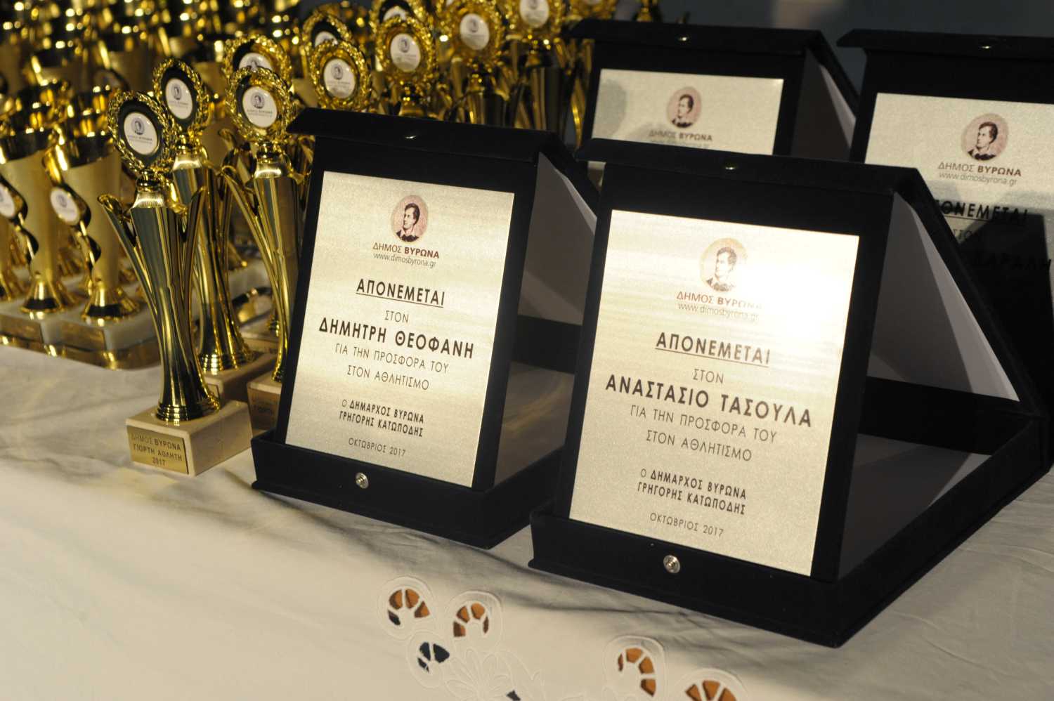 Πιο συγκεκριμένα βραβεύθηκαν για την προσφορά τους στον αθλητισμό και στην πόλη του Βύρωνα οι: