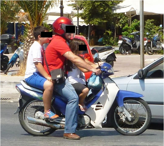 Πολλοί γονείς μεταφέρουν τα παιδιά τους χωρίς καθόλου κράνος ή με κράνος ακατάλληλου μεγέθους, ενώ δεν φορούν κράνος ούτε οι ίδιοι. Κάποιες φορές μεταφέρουν πάνω στο δίκυκλο δύο παιδιά μαζί, ακόμη και μικρότερα των 5 ετών, ή και ολόκληρη την οικογένεια.