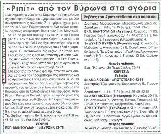 Δημοσίευμα από την εφημερίδα: Φως των σπορ- 18.04.08