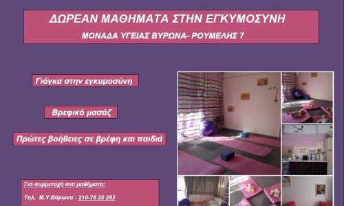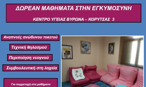 Στο Μαιευτικό Τμήμα του Κέντρου Υγείας Βύρωνα (Κορυτσάς 3) πραγματοποιούνται πρωϊνά δωρεάν μαθήματα: