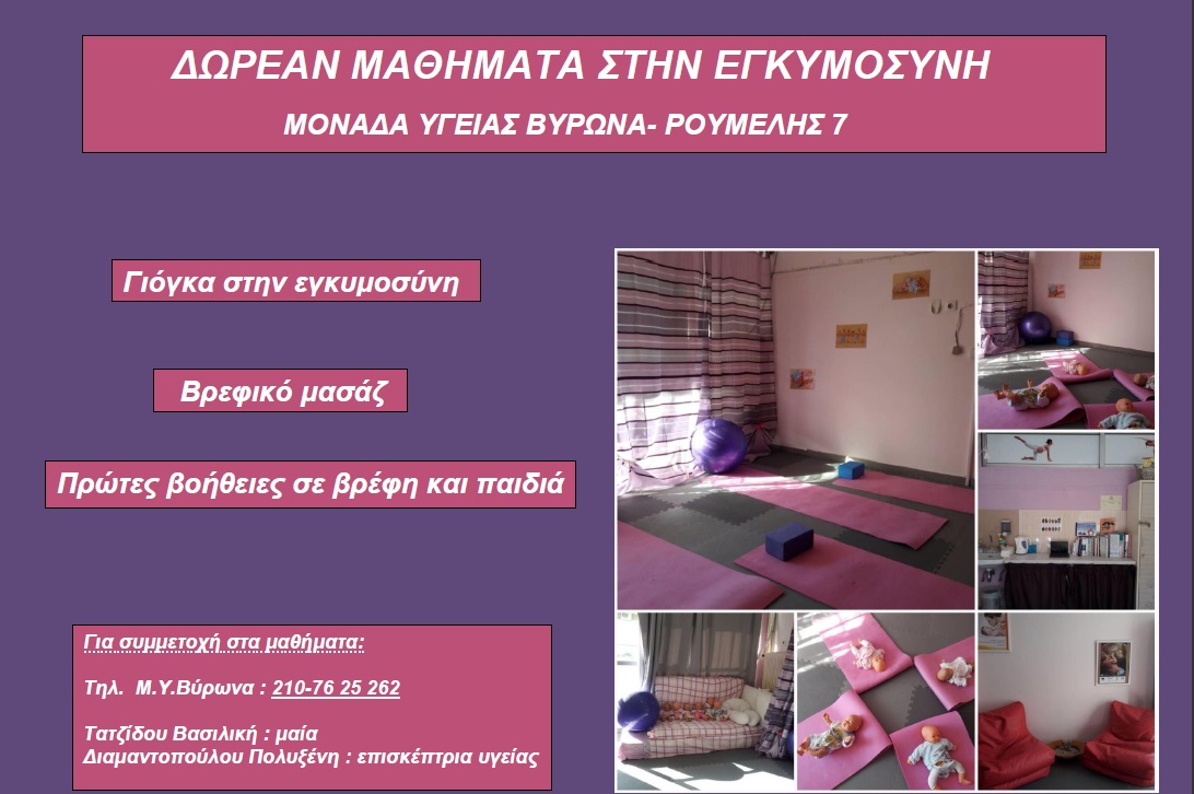 Δωρεάν μαθήματα στην εγκυμοσύνη από το Κέντρο Υγείας και τη Μονάδα Υγείας Βύρωνα