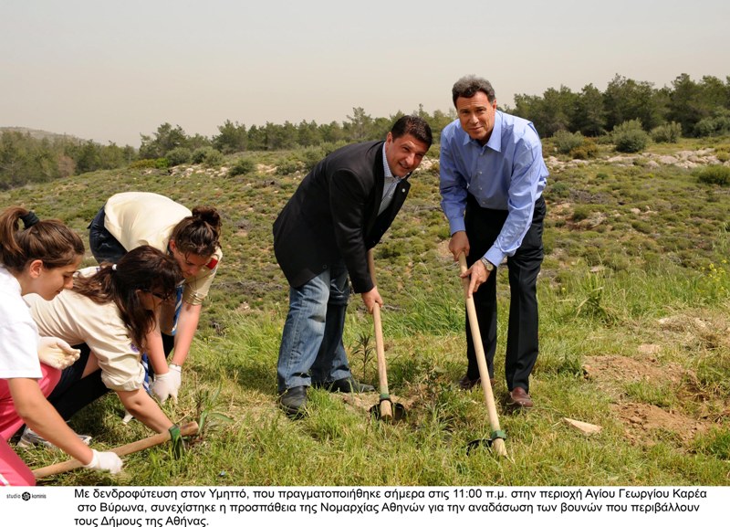 Στη δενδροφύτευση που έγινε χθες το πρωί, 22 Απριλίου, στην περιοχή Αγίου Γεωργίου Καρέα στο Βύρωνα, παραβρέθηκαν ο Νομάρχης Αθηνών Γιάννης Σγουρός, ο Πρόεδρος του Σ.Π.Α.Υ. και Δήμαρχος Βύρωνα Νίκος Χαρδαλιάς, οι Δήμαρχοι Αργυρούπολης Δ. Ευσταθιάδης και Παπάγου Β.Ξύδης, οι Αντιδήμαρχοι Αργυρούπολης Γ.Κοπίτας και Γλυφάδας Ν. Λεβετσοβίτης ενώ συμμετείχαν πρόσκοποι και κάτοικοι του Βύρωνα.