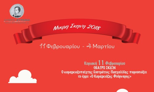 Από τις 11 Φεβρουαρίου έως τις 4 Μαρτίου 2018, ο Δήμος μας ανοίγει την αυλαία της «Μικρής Σκηνής» στον Δημοτικό Κινηματογράφο «Νέα Ελβετία» που είναι αφιερωμένη στους μικρούς μας φίλους.
