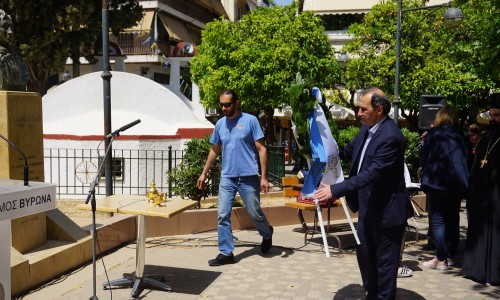 Γιορτάζουμε σήμερα στην πόλη μας, την πόλη της προσφυγιάς που φέρει το όνομα του μεγάλου ποιητή και φιλέλληνα, του Λόρδου Μπάιρον. Οφείλουμε πάντα να θυμόμαστε την ιστορία του λαού μας, την ιστορία της πόλης μας.”