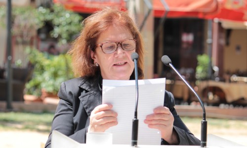 Μήνυμα της Βρετανής ακτιβίστριας της ειρήνης, Κάρεν Χάλλοους, διάβασε η Χρύσα Δούζα, μέλος του Συνδέσμου Μπάιρον