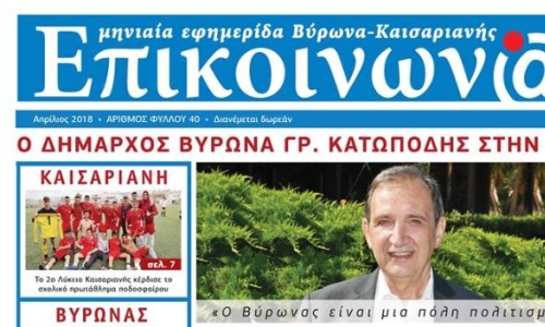 Συνέντευξη του Δημάρχου Βύρωνα, Γρηγόρη Κατωπόδη, στον αρχισυντάκτη της τοπικής εφημερίδας «ΕΠΙΚΟΙΝΩΝΙΑ» (τχ. Μαίου), Φλοράν Σελάυ: