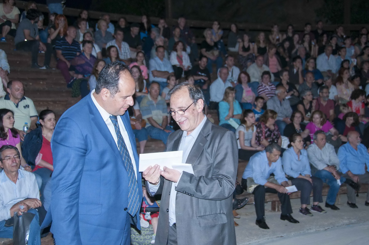 Η βραδιά έκλεισε με τον Δήμαρχο Γρηγόρη Κατωπόδη να προσφέρει αναμνηστικά στους συντελεστές της παράστασης, ευχαριστώντας τους εκ μέρους των θεατών για το υψηλής ποιότητας θέαμα που προσέφεραν στους δημότες του Βύρωνα αλλά και σε όλους τους παρευρισκόμενους.
