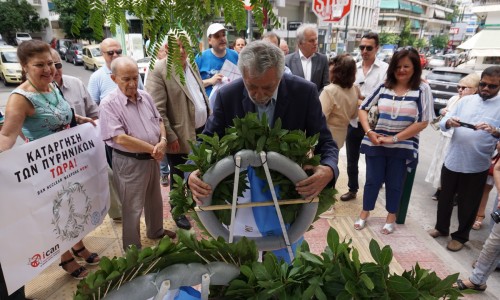Η εκδήλωση ξεκίνησε με επιμνημόσυνη δέηση και στη συνέχεια ακολούθησαν οι καταθέσεις στεφάνων κατά σειρά από το Δήμαρχο Βύρωνα Γρηγόρη Κατωπόδη, το Βουλευτή Πειραιά Θοδωρή Δρίτσα εκ μέρους της Βουλής των Ελλήνων, τις Οργανώσεις Αντιστασιακών Ομάδων, τον Πρόεδρο του Παρατηρητηρίου Διεθνών Οργανισμών και Παγκοσμιοποίησης Πάνο Τριγάζη, ενώ κλαδί ελιάς κατέθεσε εκ μέρους του Συνδέσμου Μπάιρον ο Παύλος Ναθαναήλ.