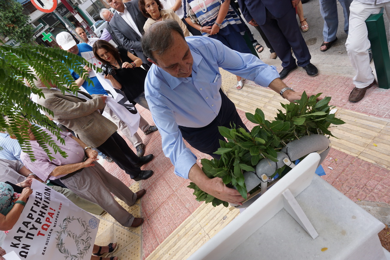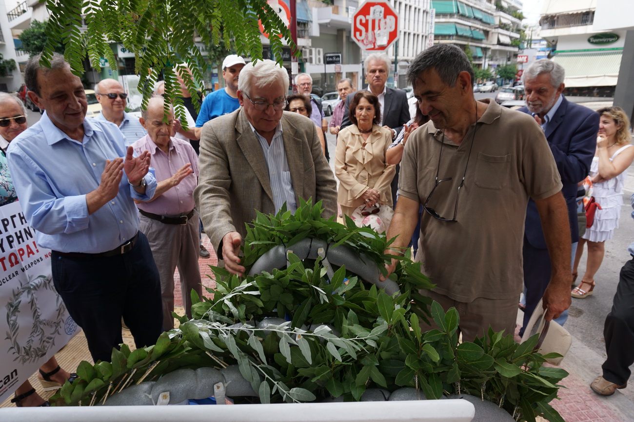 Στη συνέχεια της ομιλίας του ο Δήμαρχος Βύρωνα, αναφέρθηκε στο παγκόσμιο κίνημα ενάντια στα πυρηνικά όπλα, που δραστηριοποιείται εδώ και 70 χρόνια περίπου, αναφέροντας ότι: «Ο ψυχρός πόλεμος που αποτέλεσε την “επώαση” των όπλων μαζικής καταστροφής μπορεί να τελείωσε, όχι μόνος και ο κίνδυνος του πυρηνικού ολέθρου. Μια μικρή χαραμάδα ελπίδας είναι ότι συμπληρώνεται ακριβώς ένας χρόνος από την απαγόρευση των πυρηνικών όπλων από 120 χώρες στο πλαίσιο του ΟΗΕ, καθώς και η υπογραφή συμφωνίας για την αποπυρηνικοποίηση της Κορεατικής Χερσονήσου. Ελπίζουμε σε αντίστοιχες ενέργειες και για την πολύπαθη Μέση Ανατολή! Ο αγώνας για την απαγόρευση και κατάργησή τους συνεχίζεται! Ο ανθρωποκεντρικός και απελευθερωτικός αγώνας του Νίκου Νικηφορίδη μας εμπνέει και μας οδηγεί! Αθάνατος!»