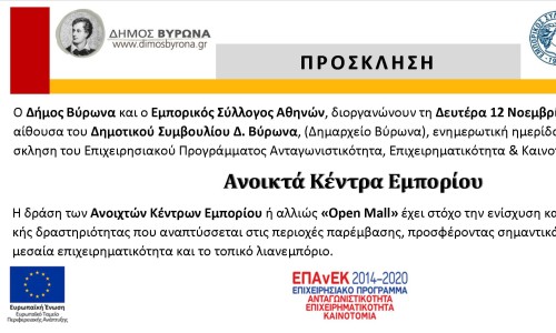 Ανοικτά Κέντρα Εμπορίου "Ο Δήμος Βύρωνα στηρίζει την τοπική επιχειρηματικότητα"