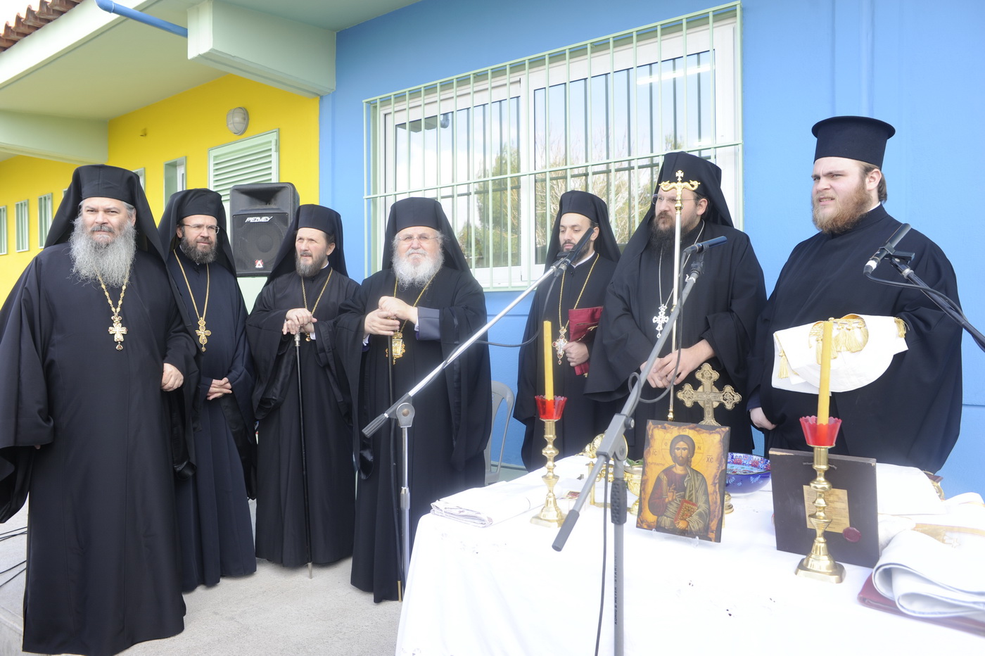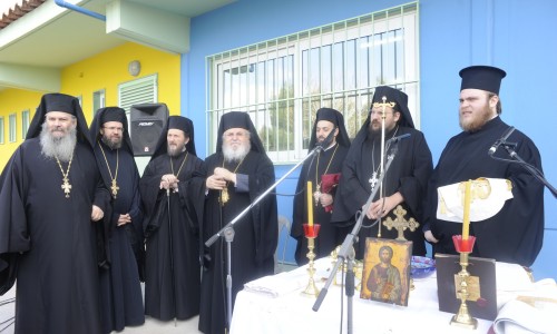 Τον Αγιασμό τέλεσε ο Μητροπολίτης κ.κ. Δανιήλ ο οποίος, πρωτίστως ευχαρίστησε τον Μακαριότατο Αρχιεπίσκοπο κ.κ. Ιερώνυμο για την άμεση ετοιμότητά του να αποδεχτεί το αίτημα της Μητρόπολης Καισαριανής, Βύρωνος και Υμηττού και του Δημάρχου Βύρωνα, για την παραχώρηση του χώρου ώστε να στεγαστεί το 4ο Δημοτικό Σχολείο. Απόφαση που καταδεικνύει τον τρόπο που η εκκλησία διαχειρίζεται την περιουσία της προς όφελος του λαού και των πιστών χριστιανών. Ευχήθηκε στα παιδιά να έχουν πρόοδο, στους εκπαιδευτικούς να έχουν υγεία και δυνάμεις, ενώ στον Δήμαρχο και στη δημοτική αρχή καλή επιτυχία σε όλα τα έργα της τα οποία θα στηρίζει και θα ευλογεί με πολύ χαρά.