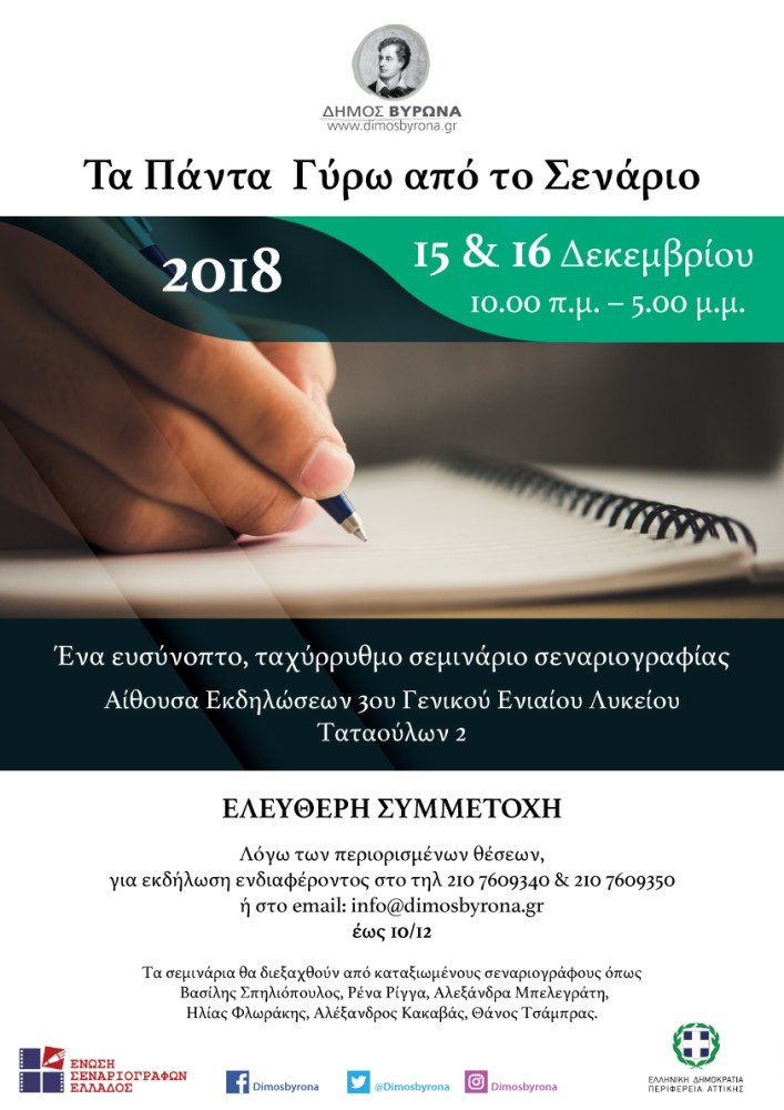 Σεμινάριο - «Τα πάντα γύρω από το σενάριο» 15 & 16 Δεκεμβρίου