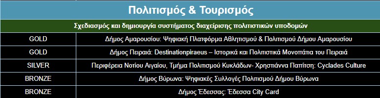 Ο Δήμος Βύρωνα βραβεύθηκε στη κατηγορία «Σχεδιασμός και δημιουργία συστήματος διαχείρισης πολιτιστικών υποδομών», για την ιστοσελίδα «Ψηφιακές Συλλογές Πολιτισμού» που διαχειρίζεται ο Δήμος και συμπεριλαμβάνει σημαντικό πολιτισμικό υλικό από το Φεστιβάλ «Στη Σκιά των Βράχων», το Παιδικό Φεστιβάλ, το Φεστιβάλ «Γειτονιές Πολιτισμού», το Φεστιβάλ «Χειμώνας – ¶νοιξη» και το Φωτογραφικό Αρχείο που απεικονίζει την καθημερινή ζωή των Μικρασιατών στις νέες εστίες τους. Το υλικό αυτό αποτελεί ένα σημαντικό μέρος της πολιτιστικής κληρονομιάς του Δήμου Βύρωνα σε εικόνα και ήχο. Το έργο της ψηφιοποίησης των αρχείων του Δήμου Βύρωνα αποσκοπεί στη διατήρηση της πολιτιστικής μας κληρονομιάς με τη βοήθεια της ψηφιακής αποτύπωσης για τη διάσωση των πολιτιστικών και ιστορικών τεκμηρίων. Το έργο χρηματοδοτήθηκε από το Επιχειρησιακό Πρόγραμμα «Ψηφιακή Σύγκλιση», στο πλαίσιο του ΕΣΠΑ, από το Ευρωπαϊκό Ταμείο Περιφερειακής Ανάπτυξης και από Εθνικούς Πόρους. (από την ιστοσελίδα «Ψηφιακές Συλλογές Πολιτισμού Δήμου Βύρωνα»).