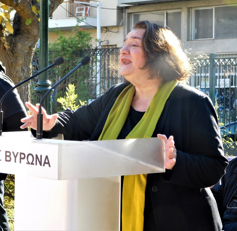 Μετά τον Δήμαρχο, τον λόγο έλαβε η Αντιπεριφερειάρχης Κεντρικού Τομέα Αθηνών Ερμίνα Κυπριανίδου: «Σήμερα είναι μια μέρα που ήρθαμε να χαρούμε όλοι και όχι μόνο τα μικρά παιδιά, αλλά και οι γονείς τους, οι φίλοι τους, όλοι μας σε αυτό τον όμορφο χώρο, που δημιουργήθηκε μέσα από ένα πνεύμα συνεργασίας, μια από κοινού σύμπραξη, με το αποτέλεσμα να είναι χρήσιμο σε όφελος των συμπολιτών μας, τότε τα πράγματα πηγαίνουν τόσο πολύ καλά και είναι και αποτελεσματικά. Εδώ είναι μια συνεργασία μεταξύ του Α’ Βαθμού της Δημοτικής Αρχής του Γρηγόρη Κατωπόδη, στον Δήμο Βύρωνα και της Περιφέρειας Αττικής. Νομίζω πως αυτό πρέπει σήμερα να χαρούμε και να σημειώσουμε ιδιαίτερα και όχι μόνο στο συγκεκριμένο έργο. Όπως χαρακτηριστικά είπε ο Δήμαρχος, είχαμε μια σειρά ενεργειών που από κοινού συμπράξαμε, επαναλαμβάνω προς όφελος των πολιτών του Βύρωνα. Ανέφερε και κάτι άλλο ο Δήμαρχος που πρέπει να το σημειώσουμε, δεκαπέντε Παιδικές Χαρές είναι μια μεγάλη υπόθεση. Σημείωσα επιπρόσθετα ότι εξάντλησε ο Δήμος Βύρωνα και εξαντλεί όλες τις χρηματοδοτικές δυνατότητες που μπορεί να έχει, είτε με ιδίους πόρους, είτε από την Περιφέρεια, είτε από το Πράσινο Ταμείο, το πρόγραμμα «ΦΙΛΟΔΗΜΟΣ». Όλα αυτά είναι πάρα πολύ σημαντικά και επιβεβαιώνεται ότι γίνεται μια σοβαρή προσπάθεια ώστε τα πράγματα να βελτιώνονται, να εκσυγχρονίζονται, να ανακαινίζονται και να τα χαίρονται μικροί και μεγάλοι, οι πολίτες του Δήμου Βύρωνα. Χρόνια Πολλά και Καλές Γιορτές σε όλους και πάντα μαζί, πρώτος και δεύτερος βαθμός Αυτοδιοίκησης να κάνουμε χρήσιμα πράγματα.»