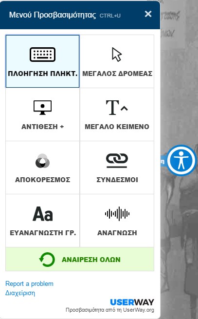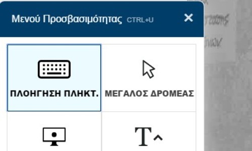 Το εικονίδιο με το «ανθρωπάκι» που βρίσκεται στο μενού, στη δεξιά πλευρά της σελίδας, προσφέρει τη δυνατότητα εύκολης πλοήγησης σε άτομα με προβλήματα όρασης, με κινητικά προβλήματα και σε ηλικιωμένους. Πιο συγκεκριμένα: